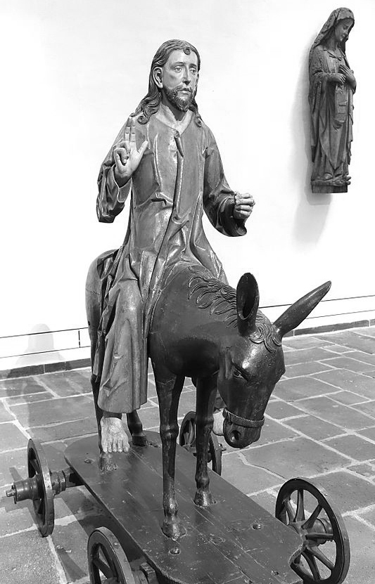 And the story continues with the mysterious and improbable fetching of a donkey, the extoling of Jesus by the disciples, the laying down of cloaks and the waving of palms, and ends with the possibility of the rocks crying out praise.